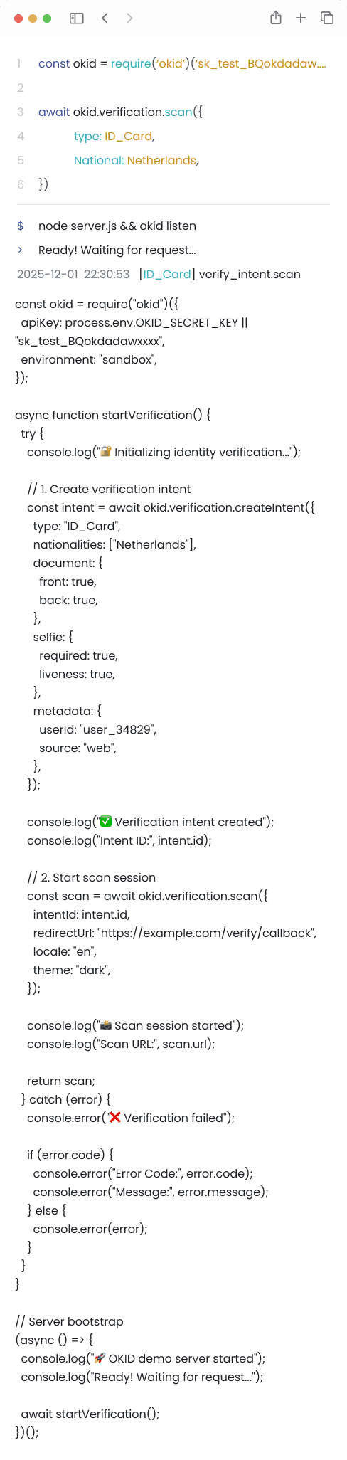 Quickly integrate okID s secure identity verification API into your apps. Our well documented, flexible pre-built libraries and SDKs make KYC, ID checks, and fraud prevention fast and reliable for developers worldwide.